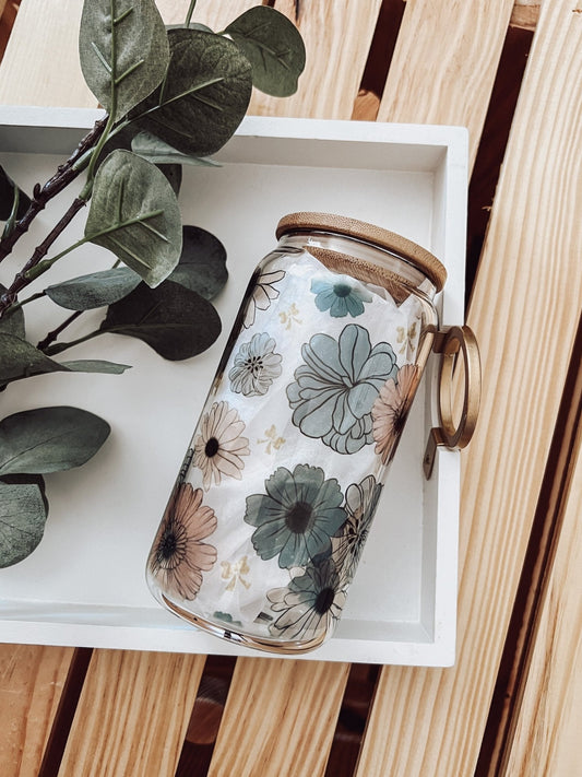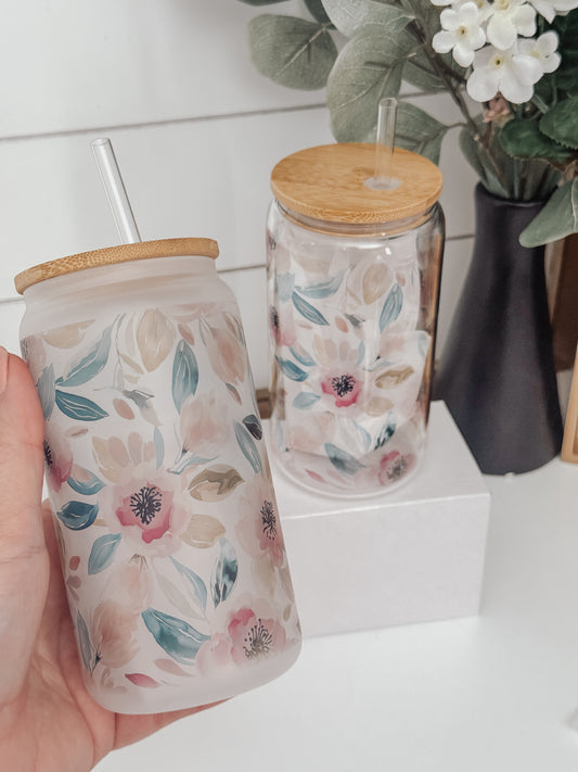 Choose Kindness Floral Rainbow 16oz Glass Can Cup