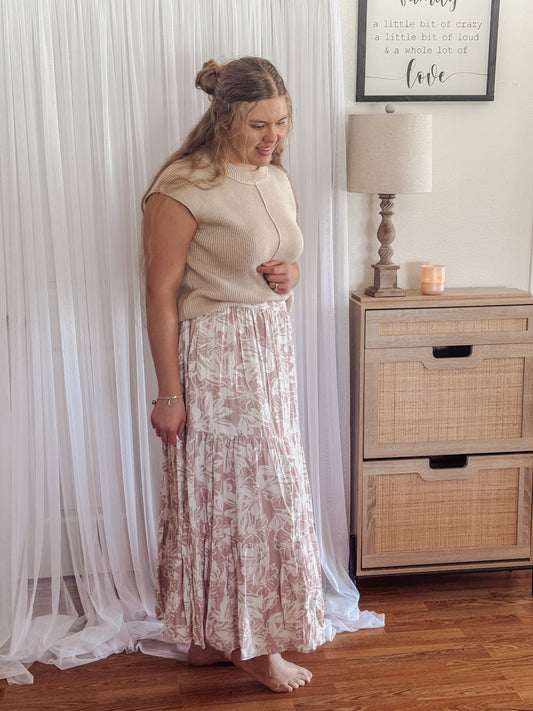 Ivy Lilac Floral Print Maxi Length Skirt with Pockets