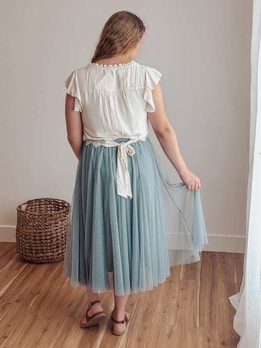 RESTOCKED Floral Ruffled Mesh Midi Skirt