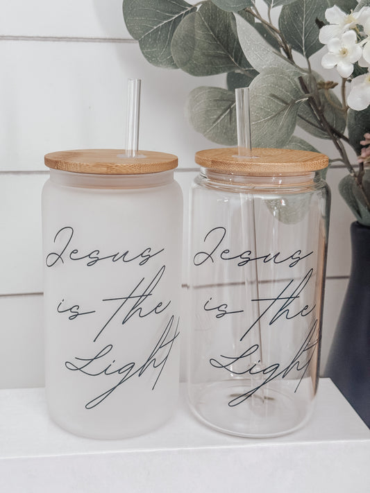 Jesus Is The Light 16oz Glass Can Cup