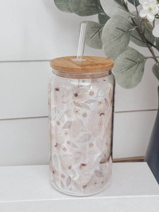 Retro Floral 16oz Glass Can Cup