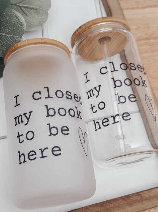I Closed My Book 16oz Glass Can Cup