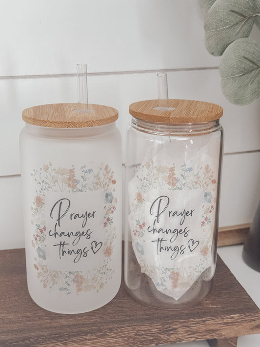 Floral Prayer Changes Things 16oz Glass Can Cup