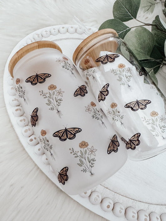 Boho Butterflies 16oz Glass Can Cup