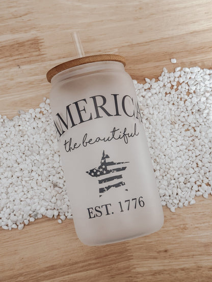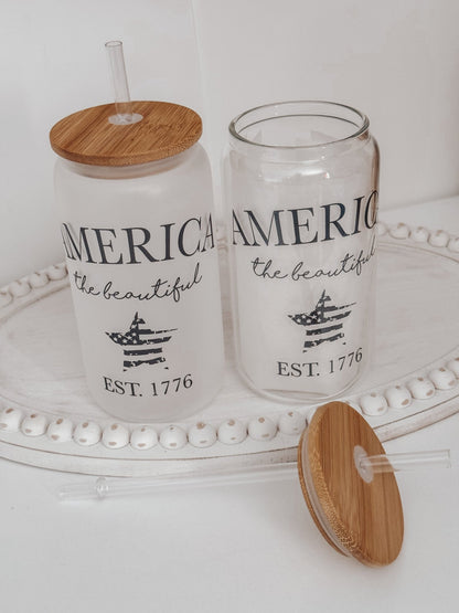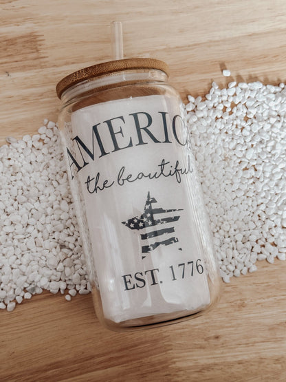 America The Beautiful 16oz Glass Can Cup