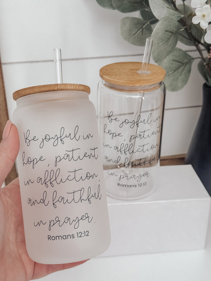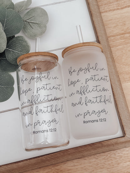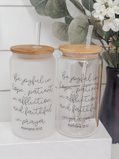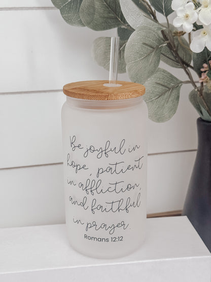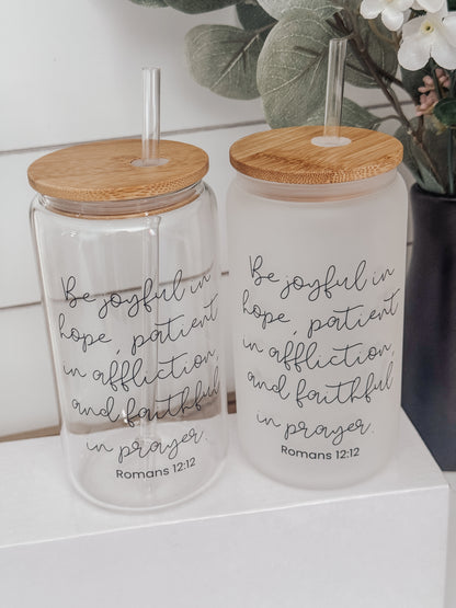 Be Joyful 16oz Glass Can Cup
