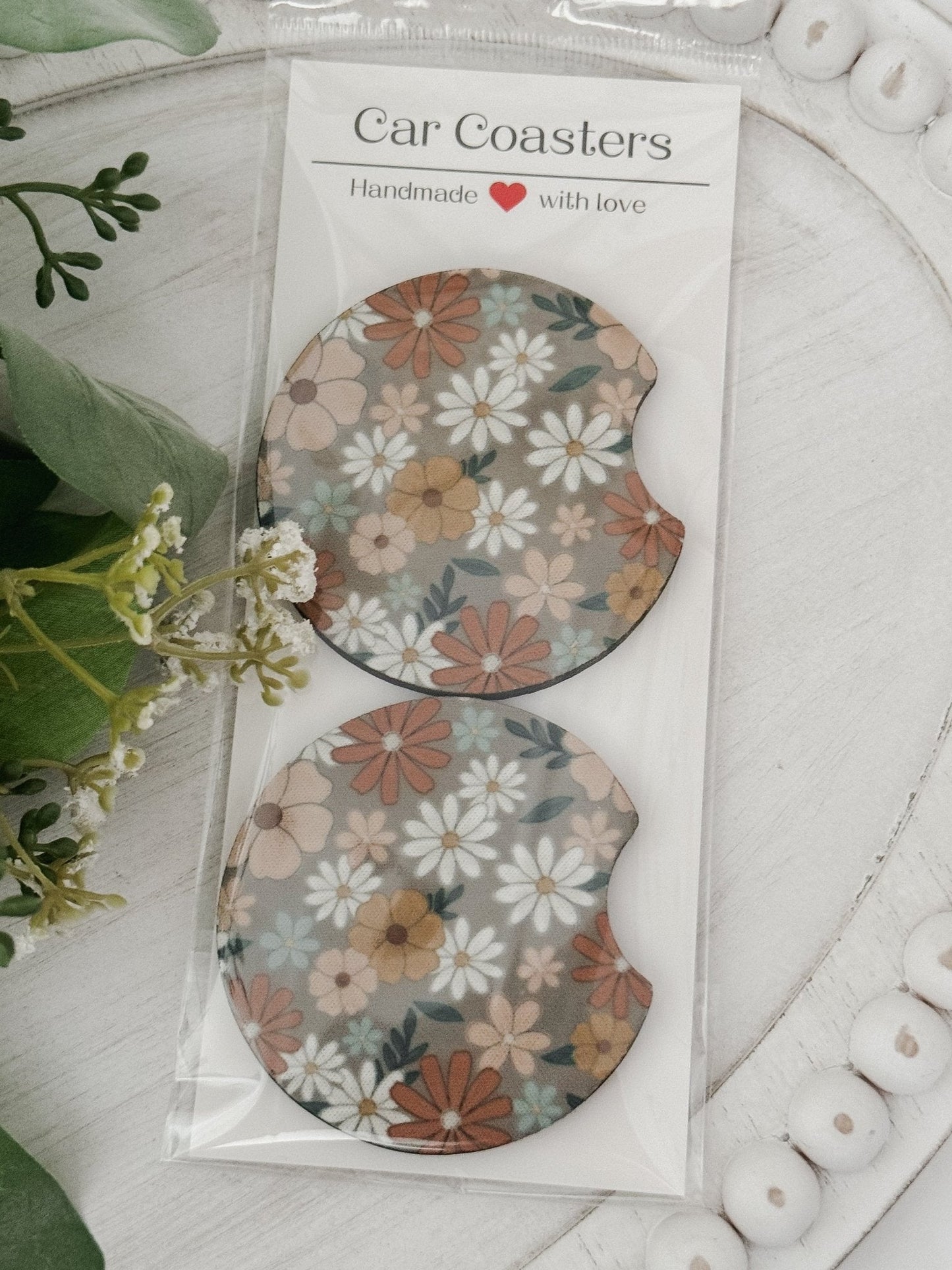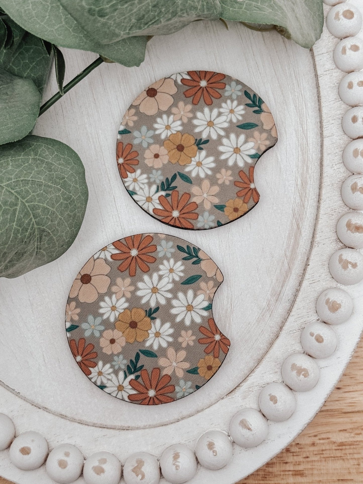 Transform your car's interior with our car coasters adorned with beautiful orange floral patterns and daisies. Elevate your ride with these stylish accents that will protect your cup holders and add a touch of nature to your daily commute.