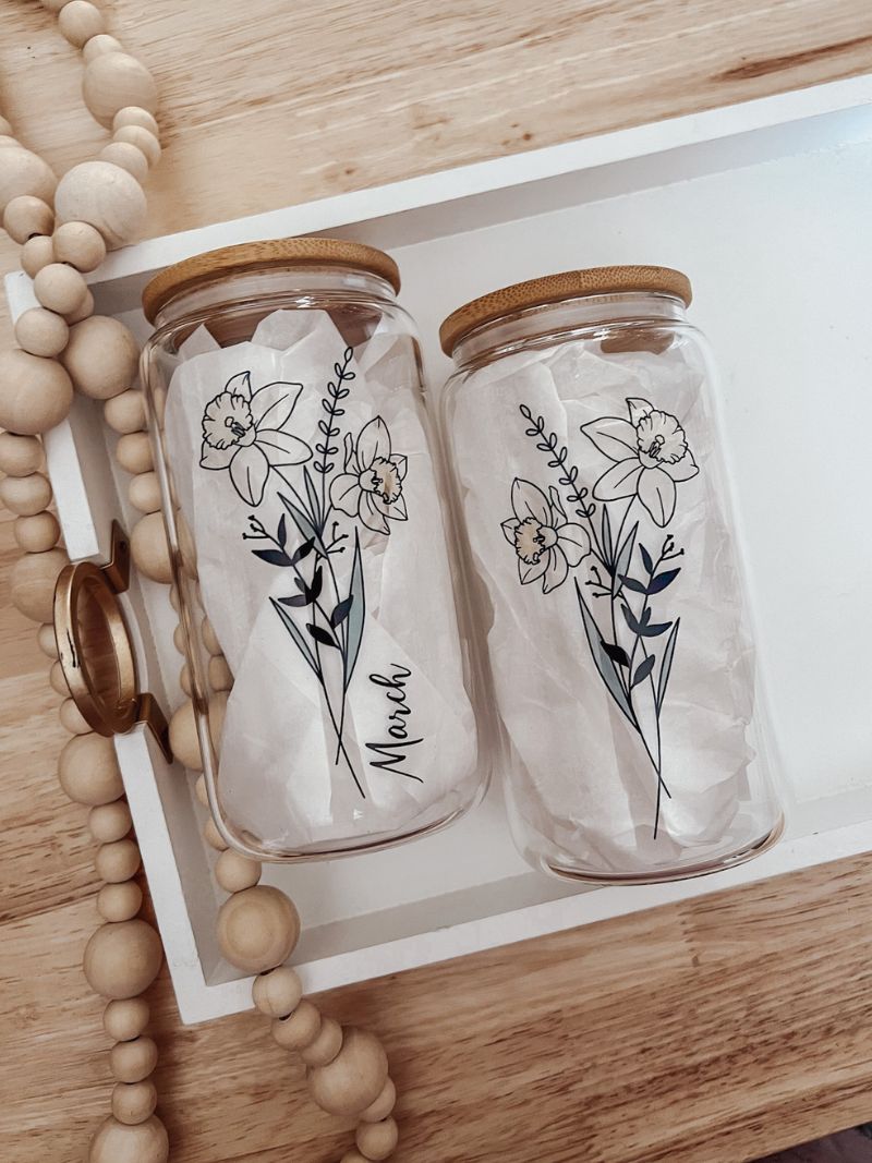 Celebrate your birth month with our beautiful 16oz Glass Can Cup featuring your unique birth flower. Made with high-quality glass, it's perfect for hot or cold beverages. Start your day off right and add a touch of personalization to your drinkware collection with this stunning cup.