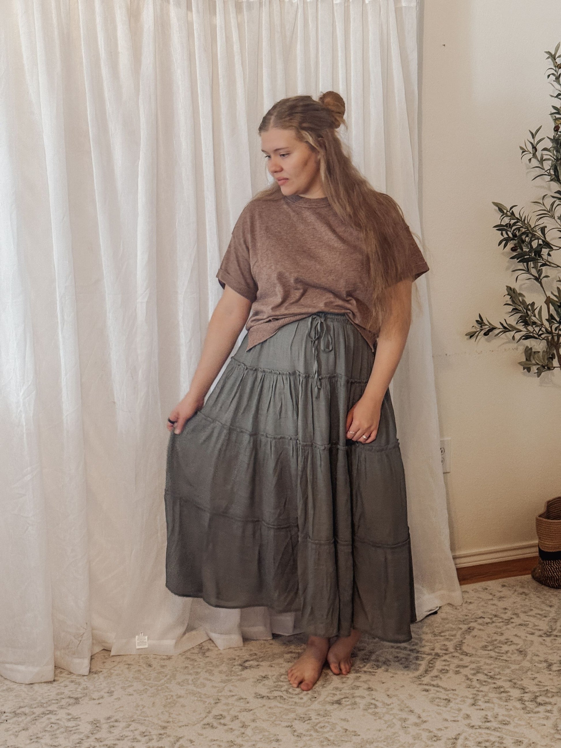 Meet the elevated basic your closet has been missing — the Rowan Soft Knit Tee. Crafted from a buttery-soft, midweight knit, this top blends the comfort of your favorite tee with the refined look of a sweater. The rich mocha hue, rolled short sleeves, and relaxed silhouette create that effortless, everyday style you can dress up or down with ease.