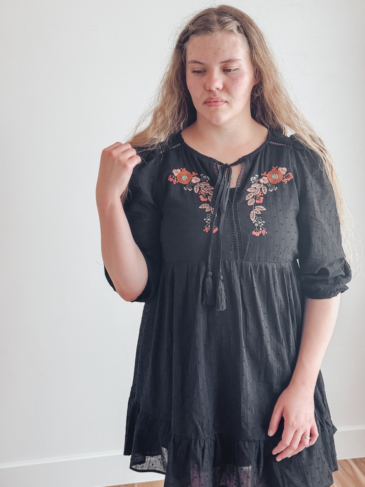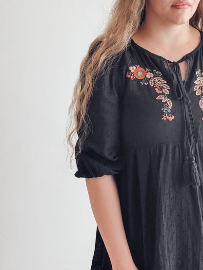 Embroidered Ruffled Baby Doll Dress