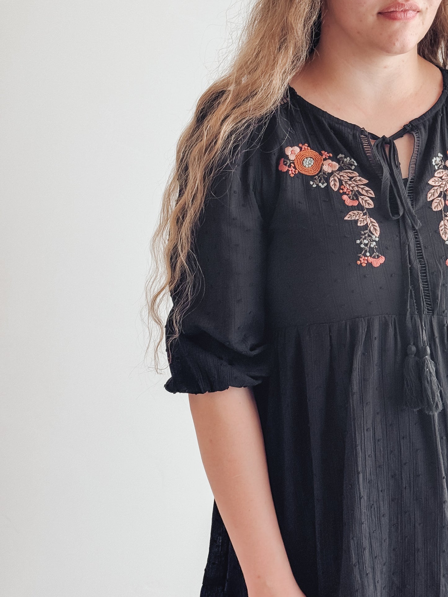 This charming Embroidered Ruffled Baby Doll Dress combines delicate embroidery with playful ruffles for a sweet, feminine look. The comfortable baby doll silhouette flatters all body types while providing ease of movement throughout your day. Perfect for casual outings or dressed up with accessories for special occasions.