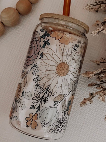 Taste autumn in every sip with our Fall Floral 16 oz Glass Can Cup! This quirky, floral-patterned cup is perfect for keeping your drinks cool and your vibes even cooler. Embrace the season and elevate your beverage game with this must-have accessory.