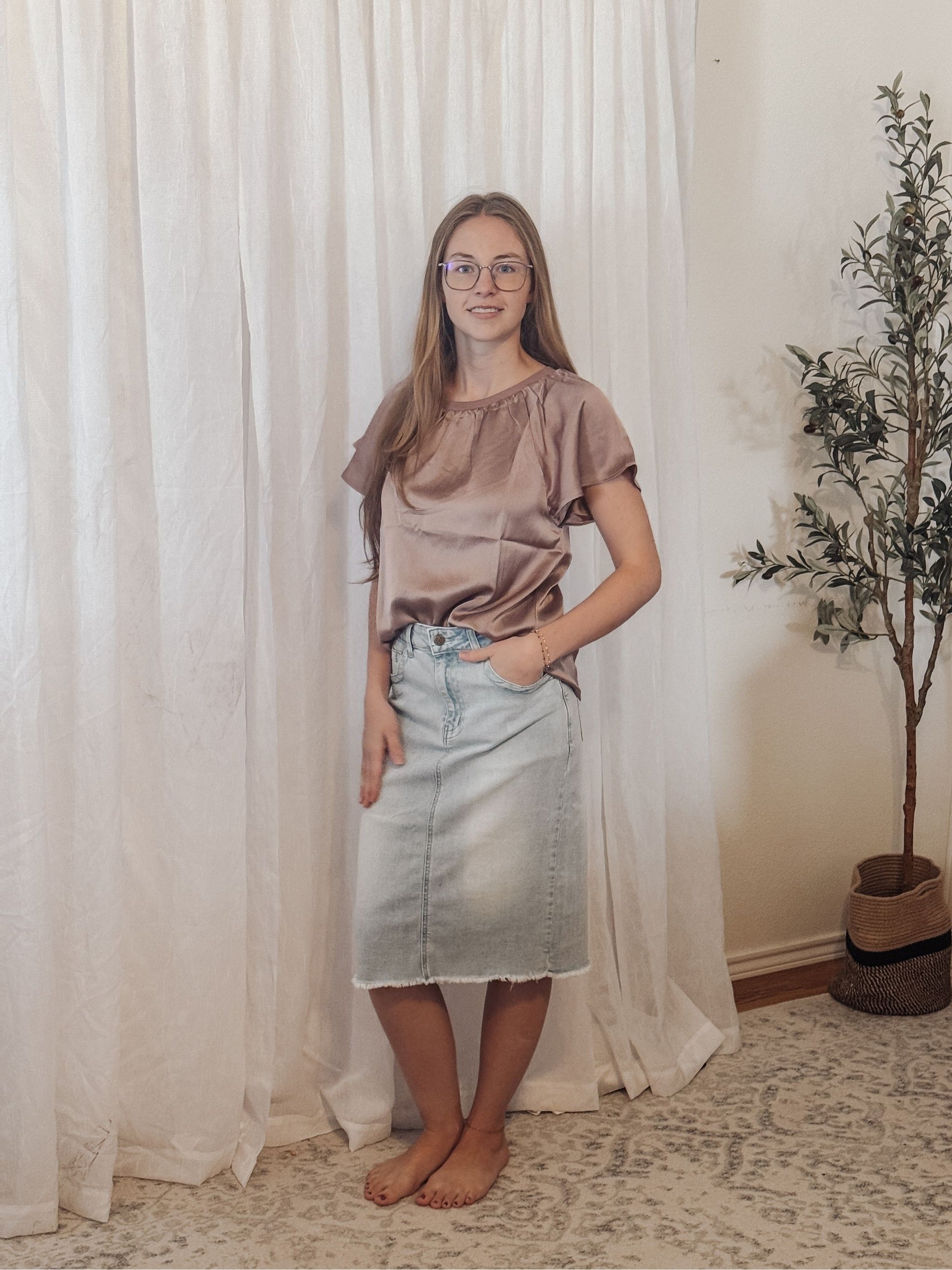 Meet the Maeve Satin Top — effortlessly elegant and timelessly feminine. Crafted from a silky satin fabric that catches the light just right, this blouse features soft flutter sleeves and a gathered neckline for a romantic drape. Perfectly polished yet easy to wear, it’s your new go-to for dressing up denim or pairing with tailored skirts.