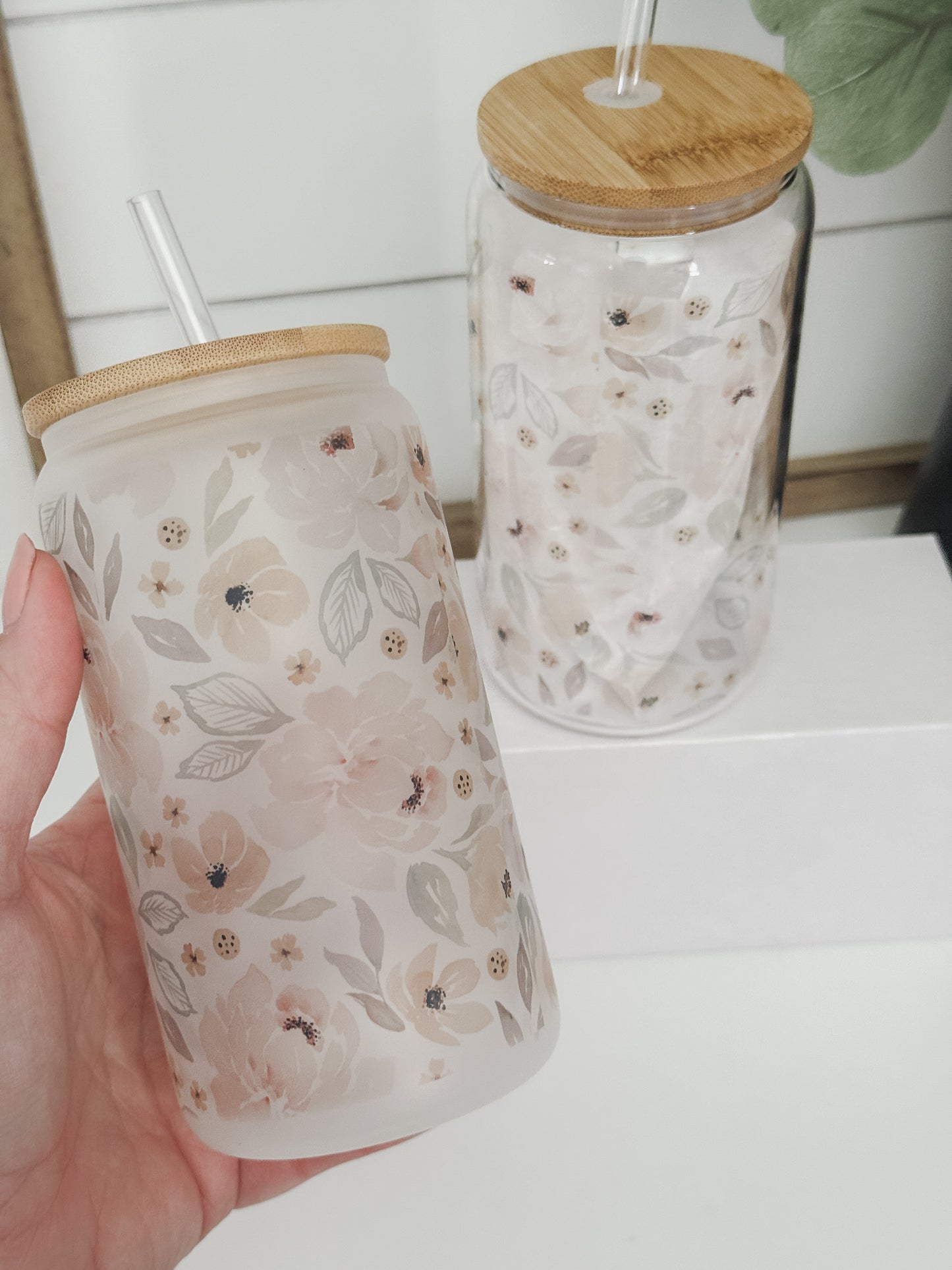 Pink Spring Watercolor Floral 16oz Glass Can Cup