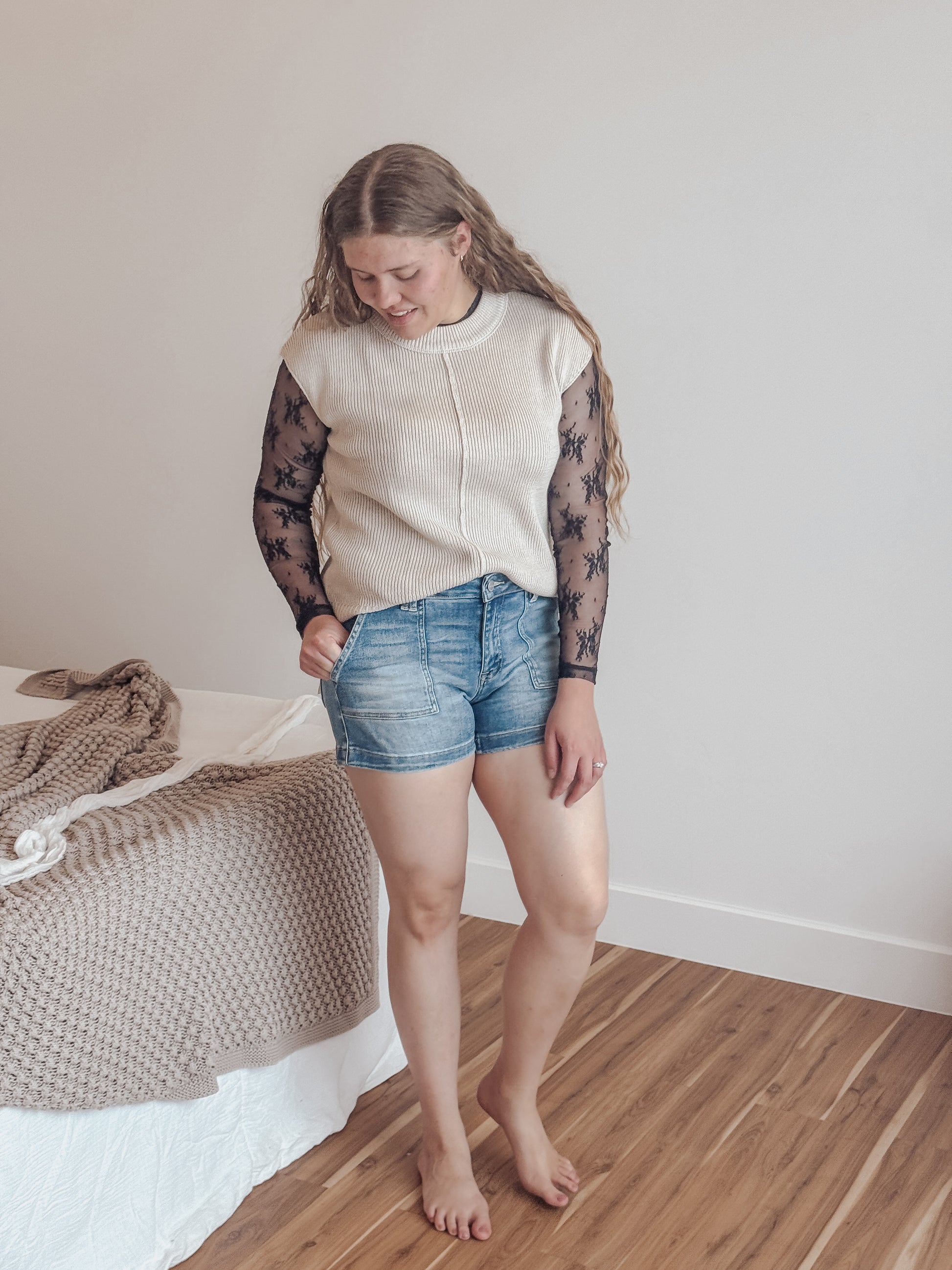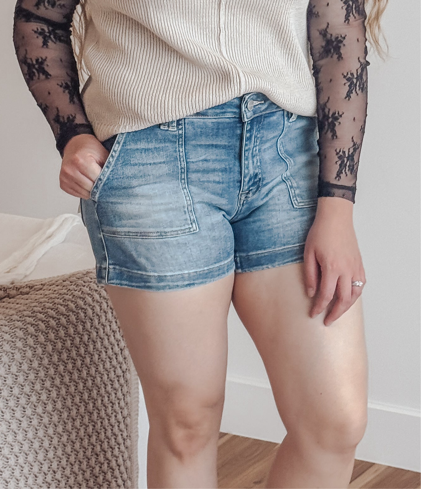 Bring a touch of retro to your summer lineup with the Risen Low Rise Patched Pocket Shorts. These medium wash denim shorts feature bold front patch pockets and a low-rise fit for a vintage-inspired look that’s both flattering and fun. The structured fabric holds its shape while offering just enough comfort for all-day wear. A perfect pick for crop tops, tanks, or oversized tees.